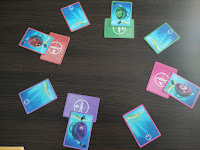 Chociaż instrukcja nie należy do najlepiej zredagowanych i trzeba ją kilkukrotnie przeczytać, by ogarnąć szczegóły zasad, to sama gra jest całkiem prosta i przyjemna. A jeśli nie chcecie się męczyć, to wydawca na swoim kanale na YT zamieścił krótki film opisujący jej reguły. W trakcie gry przesuwacie drewniany znacznik po okręgu i rozpatrujecie pola przez niego wskazane. Jeśli na polu znajdzie się tylko karta oceanu, to przesuńcie znacznik na kolejne pole. Jeśli jest tylko karta okrętu gracza – rozgrywa on swoją turę, a jeśli znacznik znajdzie się na polu z kartą torpedy – jest ona aktywowana. W swojej turze gracz może uzupełnić rękę, tak by mieć na niej 4 karty, lub może też wykonać akcję ruchu albo strzału. Strzał polega na przesunięciu karty torpedy spod swojego okrętu (musi mieć wcześniej załadowaną amunicję) przed pole, do którego strzela (karta oceanu albo okrętu gracza). Ruch natomiast odbywa się przez przesunięcie kart okrętów na sąsiednie pole, a jeśli znajduje się tam przeciwnik – musicie się skonfrontować, odkrywając po jednej karcie torpedy z ręki. No i ostatecznie, gdy drewniany znacznik znajdzie się na polu z torpedą, taka jest aktywowana. W przypadku, gdy znajduje się z kartą oceanu, to nic się nie dzieje. Jednak gdy aktywuje się na polu ze statkiem – dostaje on obrażenie. Gdy otrzymacie drugie trafienie torpedą, to gracz kontrolujący dany statek odpada z gry. W ten sposób rozgrywka trwa do momentu, aż na pobojowisku nie zostanie jeden zwycięski gracz.